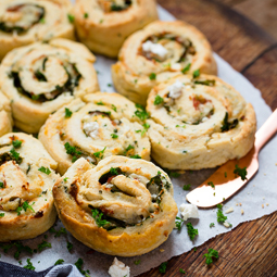 Thinly sliced bread brushed with olive oil and toasted